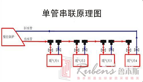 優(yōu)點(diǎn):暖氣片串聯(lián)比較節(jié)省材料,只需要一根管子,安裝成本較低,節(jié)省空間;